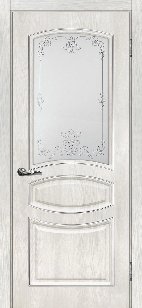 Качественная Межкомнатная дверь Сиена-5 Дуб жемчужный продается по цене 11 791 руб. за полотно. Доступные размеры 550x1900, 600x1900, 600x2000, 700x2000, 800x2000, 900x2000. Так же в наличии большой выбор комплектующих к данной модели, подходящих по цвету и фактуре.