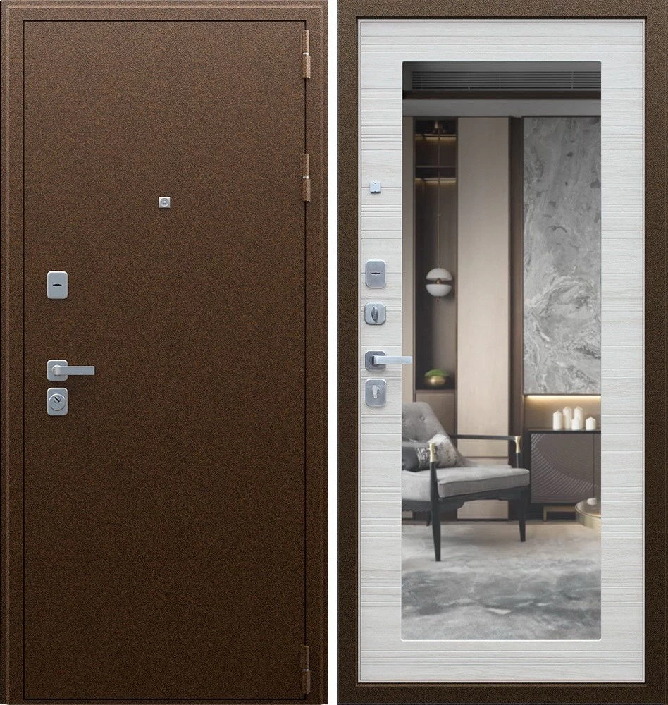 Надежная входная Дверь Спартак с зеркалом Акация Светлая Поперечная премиум класса по цене 36 187 руб. Большая толщина стали защитит от проникновения в ваш дом, квартиру или коттедж. Используется очень качественная фурнитура: замки, цилиндры, ручки, защелки. Покрытие и отделка двери изготовлено под внимательным контролем производителя. Дверь имеет долгий срок службы и гарантию.