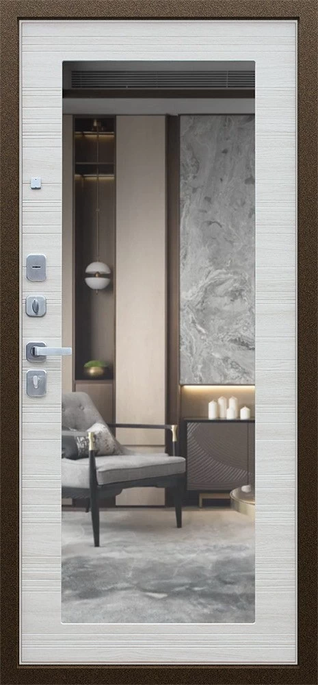Надежная входная Дверь Спартак с зеркалом Акация Светлая Поперечная премиум класса по цене 36 187 руб. Большая толщина стали защитит от проникновения в ваш дом, квартиру или коттедж. Используется очень качественная фурнитура: замки, цилиндры, ручки, защелки. Покрытие и отделка двери изготовлено под внимательным контролем производителя. Дверь имеет долгий срок службы и гарантию.