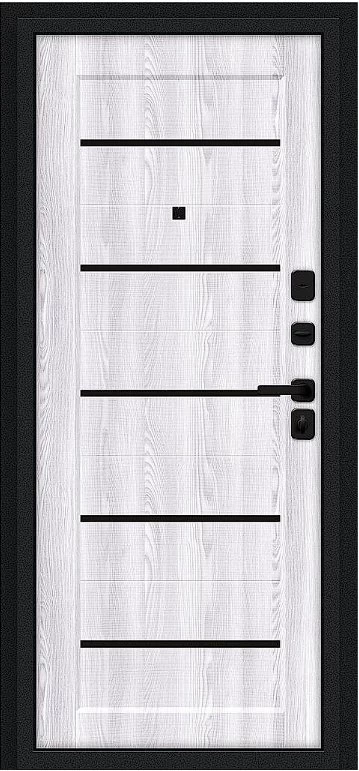 Надежная входная Дверь Браво Борн/SBlack Букле черное/Riviera Ice премиум класса по цене 31 187 руб. Большая толщина стали защитит от проникновения в ваш дом, квартиру или коттедж. Используется очень качественная фурнитура: замки, цилиндры, ручки, защелки. Покрытие и отделка двери изготовлено под внимательным контролем производителя. Дверь имеет долгий срок службы и гарантию.