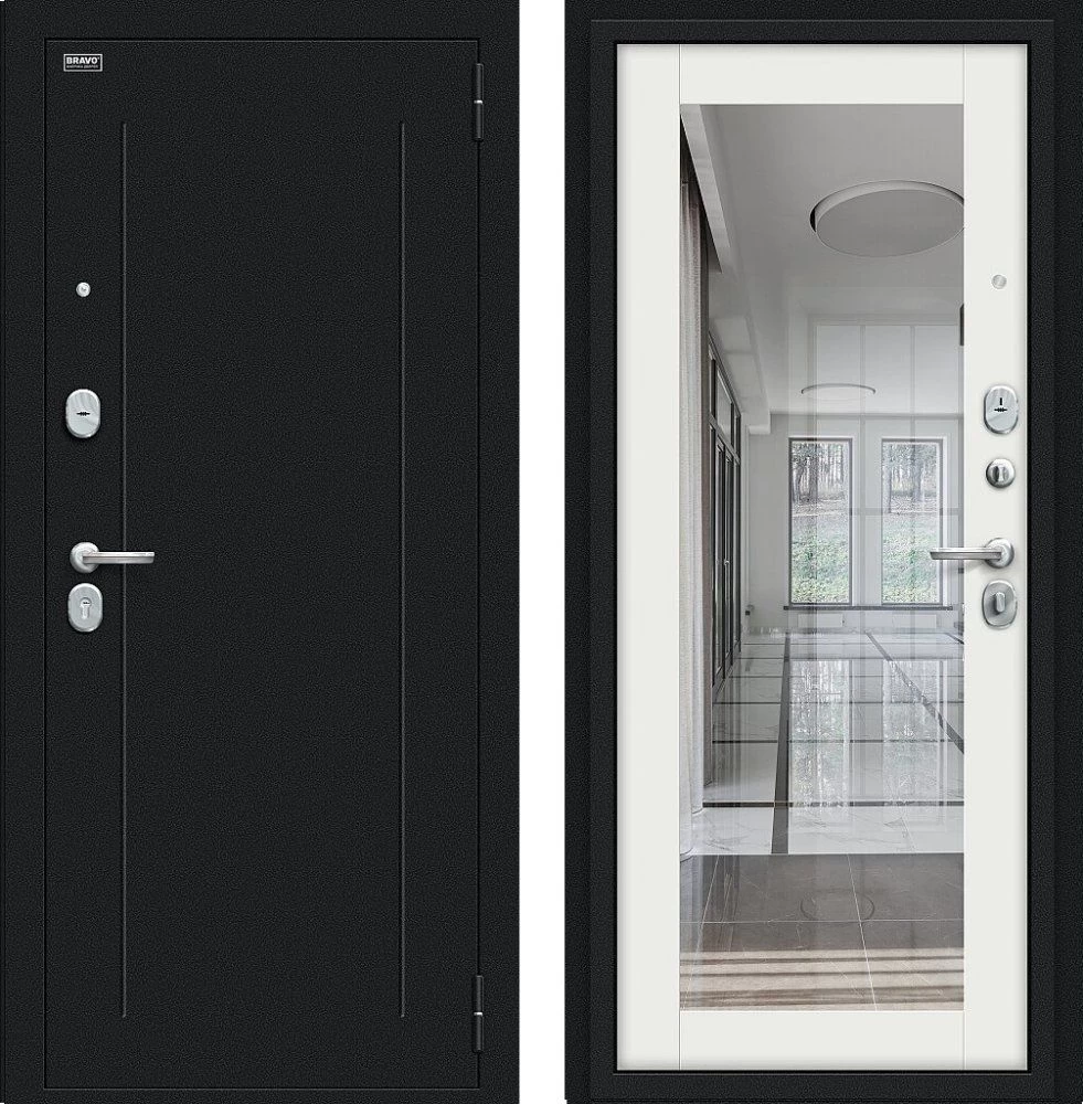 Надежная входная Дверь Браво Флэш Букле черное/Off-white премиум класса по цене 33 587 руб. Большая толщина стали защитит от проникновения в ваш дом, квартиру или коттедж. Используется очень качественная фурнитура: замки, цилиндры, ручки, защелки. Покрытие и отделка двери изготовлено под внимательным контролем производителя. Дверь имеет долгий срок службы и гарантию.