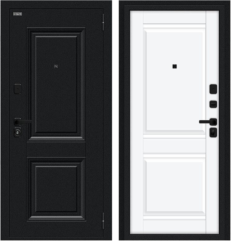 Надежная входная Дверь Браво Некст МФ/SBlack Букле черное/White Silk премиум класса по цене 35 837 руб. Большая толщина стали защитит от проникновения в ваш дом, квартиру или коттедж. Используется очень качественная фурнитура: замки, цилиндры, ручки, защелки. Покрытие и отделка двери изготовлено под внимательным контролем производителя. Дверь имеет долгий срок службы и гарантию.