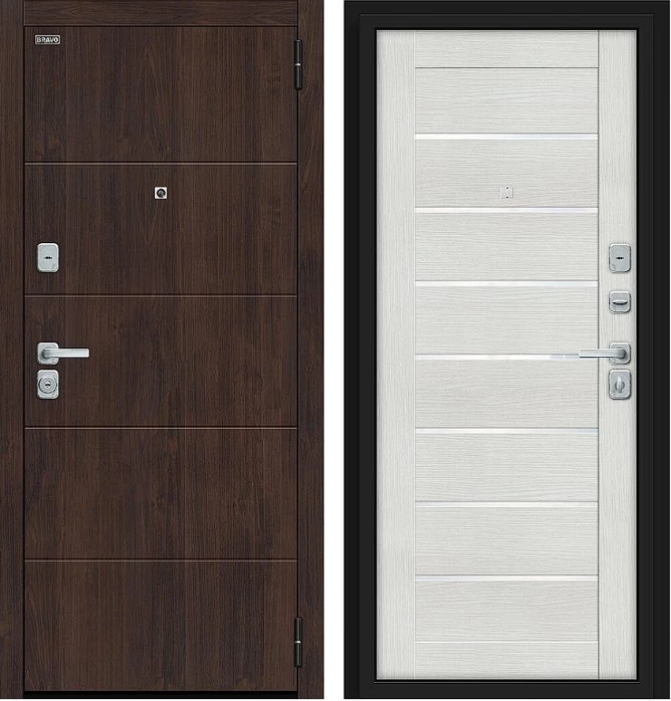 Надежная входная Дверь Браво Прайм/BChrome Almon/Bianco Melinga премиум класса по цене 39 687 руб. Большая толщина стали защитит от проникновения в ваш дом, квартиру или коттедж. Используется очень качественная фурнитура: замки, цилиндры, ручки, защелки. Покрытие и отделка двери изготовлено под внимательным контролем производителя. Дверь имеет долгий срок службы и гарантию.