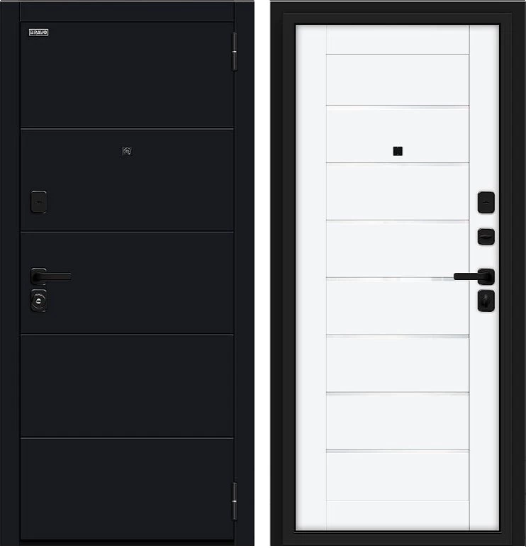Надежная входная Дверь Браво Прайм/SBlack-Black Shell/White Silk премиум класса по цене 39 987 руб. Большая толщина стали защитит от проникновения в ваш дом, квартиру или коттедж. Используется очень качественная фурнитура: замки, цилиндры, ручки, защелки. Покрытие и отделка двери изготовлено под внимательным контролем производителя. Дверь имеет долгий срок службы и гарантию.