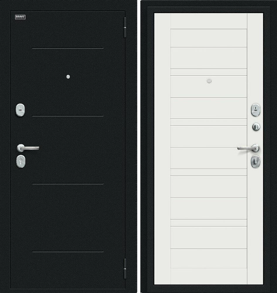 Надежная входная Дверь Браво Сити Kale Букле черное/Off-white премиум класса по цене 36 157 руб. Большая толщина стали защитит от проникновения в ваш дом, квартиру или коттедж. Используется очень качественная фурнитура: замки, цилиндры, ручки, защелки. Покрытие и отделка двери изготовлено под внимательным контролем производителя. Дверь имеет долгий срок службы и гарантию.