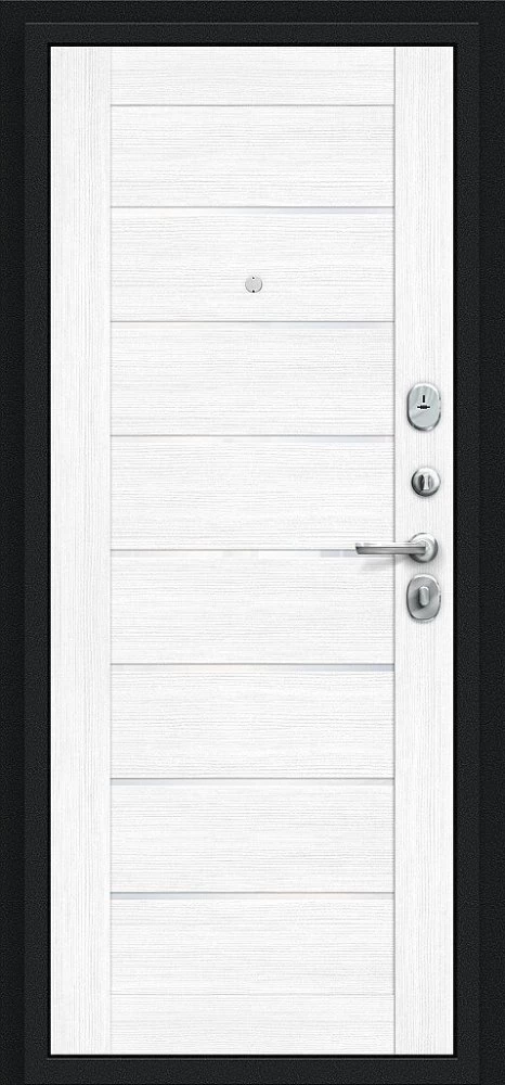 Надежная входная Дверь Браво Техно Букле черное/Snow Melinga премиум класса по цене 31 037 руб. Большая толщина стали защитит от проникновения в ваш дом, квартиру или коттедж. Используется очень качественная фурнитура: замки, цилиндры, ручки, защелки. Покрытие и отделка двери изготовлено под внимательным контролем производителя. Дверь имеет долгий срок службы и гарантию.
