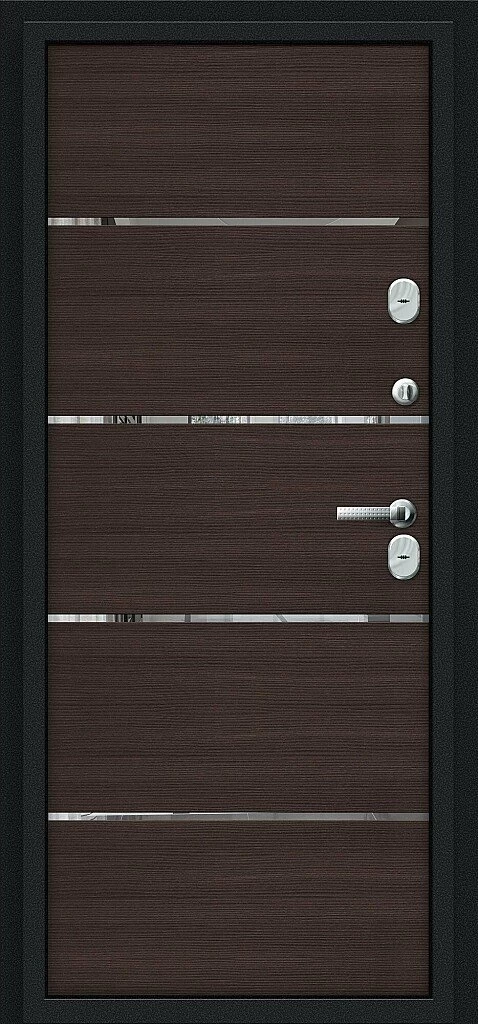 Надежная входная Входная дверь Thermo Лайн Букле черное/Wenge Veralinga BR4579 премиум класса по цене 48 328 руб. Большая толщина стали защитит от проникновения в ваш дом, квартиру или коттедж. Используется очень качественная фурнитура: замки, цилиндры, ручки, защелки. Покрытие и отделка двери изготовлено под внимательным контролем производителя. Дверь имеет долгий срок службы и гарантию.