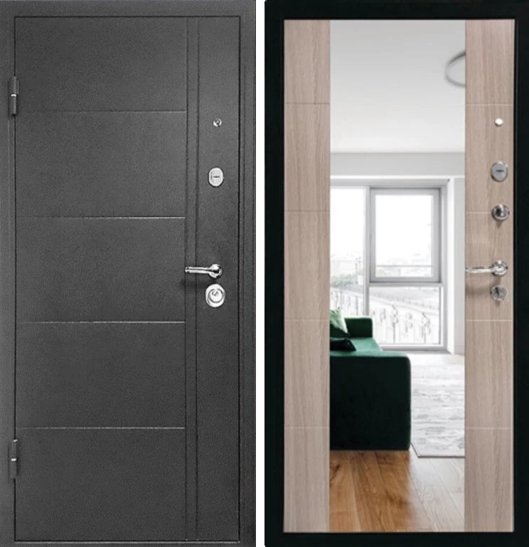 Надежная входная Дверь Эверест Зеркало Сандал Серый премиум класса по цене 33 467 руб. Большая толщина стали защитит от проникновения в ваш дом, квартиру или коттедж. Используется очень качественная фурнитура: замки, цилиндры, ручки, защелки. Покрытие и отделка двери изготовлено под внимательным контролем производителя. Дверь имеет долгий срок службы и гарантию.