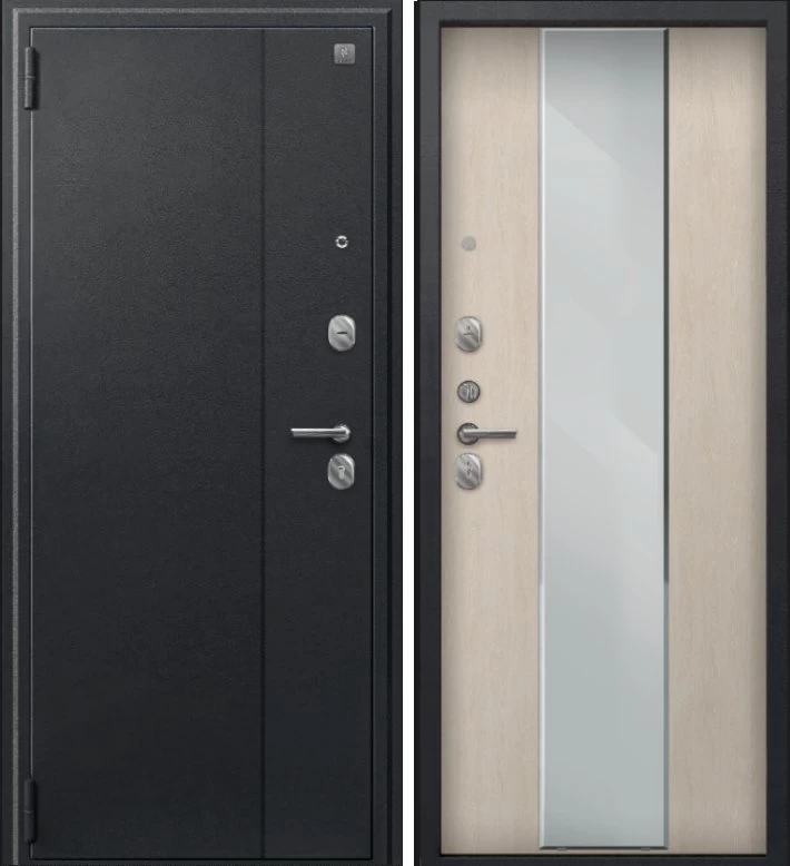 Надежная входная Дверь A-04 черный сатин - седой дуб зеркало премиум класса по цене 33 787 руб. Большая толщина стали защитит от проникновения в ваш дом, квартиру или коттедж. Используется очень качественная фурнитура: замки, цилиндры, ручки, защелки. Покрытие и отделка двери изготовлено под внимательным контролем производителя. Дверь имеет долгий срок службы и гарантию.