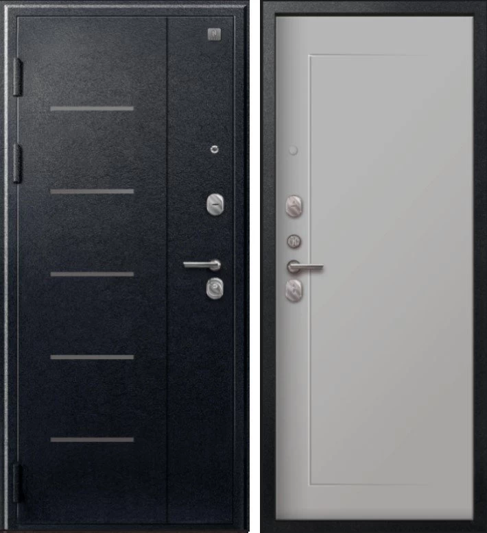 Надежная входная Дверь V-03 Черный муар - Кашемир сильвер премиум класса по цене 39 247 руб. Большая толщина стали защитит от проникновения в ваш дом, квартиру или коттедж. Используется очень качественная фурнитура: замки, цилиндры, ручки, защелки. Покрытие и отделка двери изготовлено под внимательным контролем производителя. Дверь имеет долгий срок службы и гарантию.