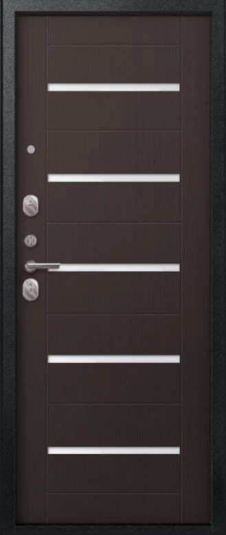 Надежная входная Дверь V-05 Черный муар - Темная лиственница премиум класса по цене 41 537 руб. Большая толщина стали защитит от проникновения в ваш дом, квартиру или коттедж. Используется очень качественная фурнитура: замки, цилиндры, ручки, защелки. Покрытие и отделка двери изготовлено под внимательным контролем производителя. Дверь имеет долгий срок службы и гарантию.
